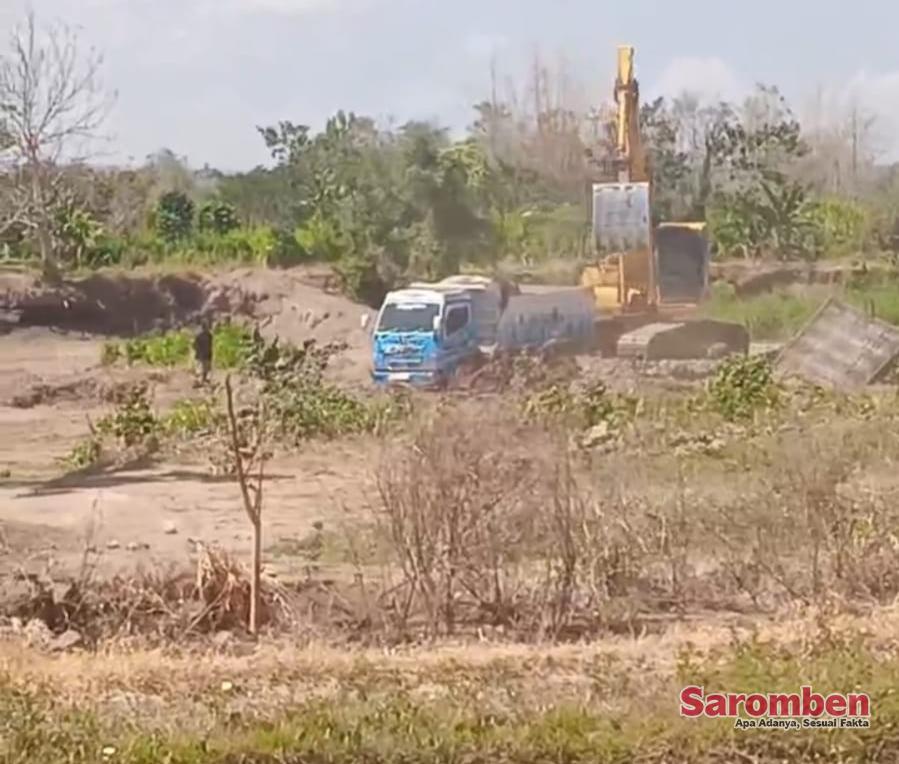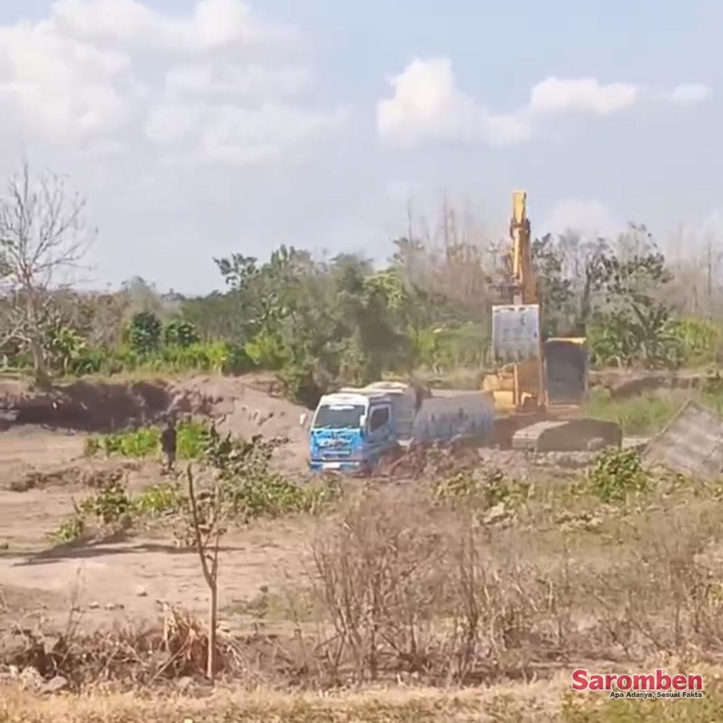 Pantauan Saromben.com di lokasi, Jumat (1/8/2025) pagi, tampak puluhan dump truk hilir mudik sejak pukul 07.00 WIB, mengangkut pasir dari titik tambang. Terlihat pula sejumlah alat berat yang terus beroperasi di area tersebut.