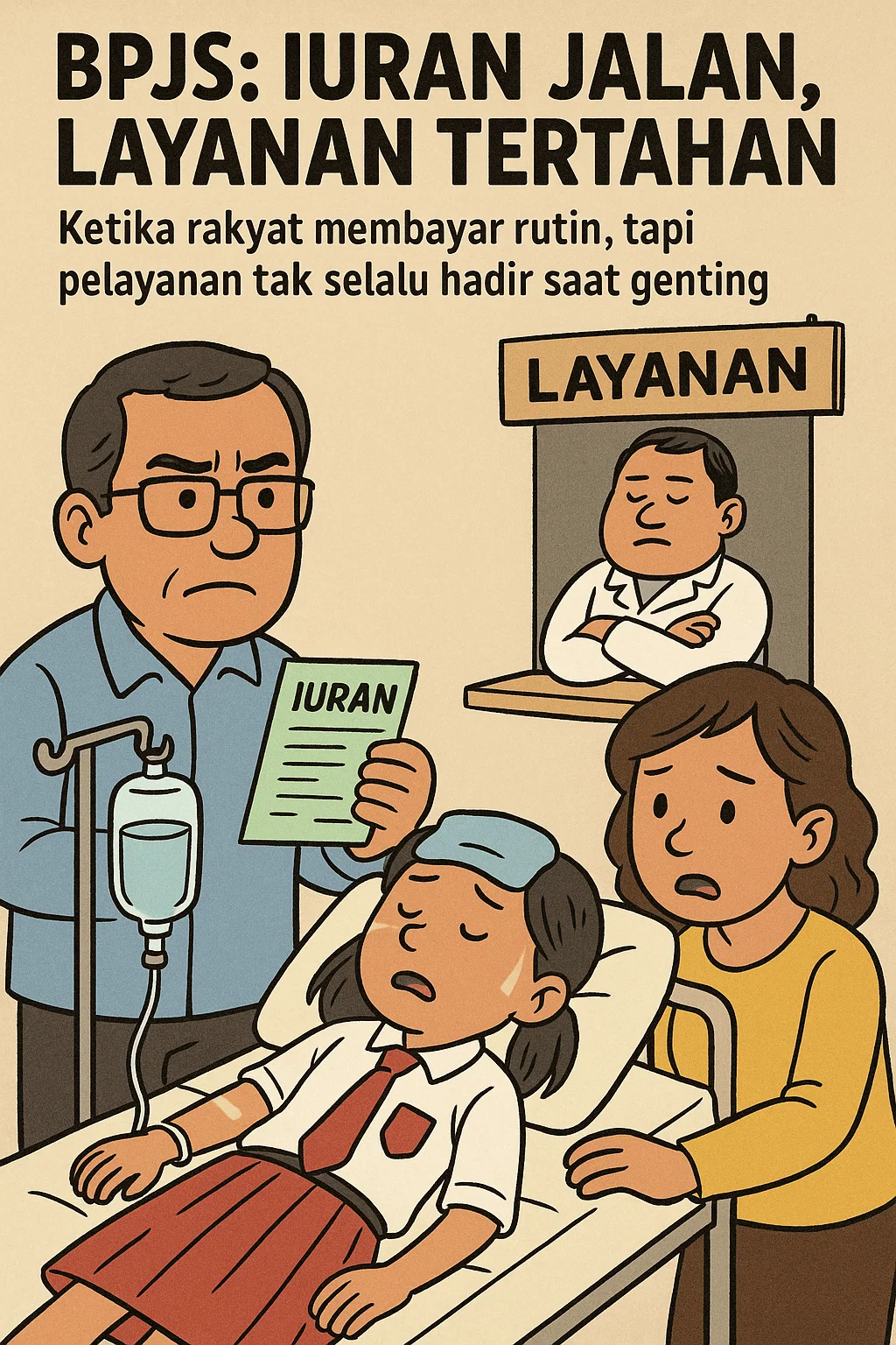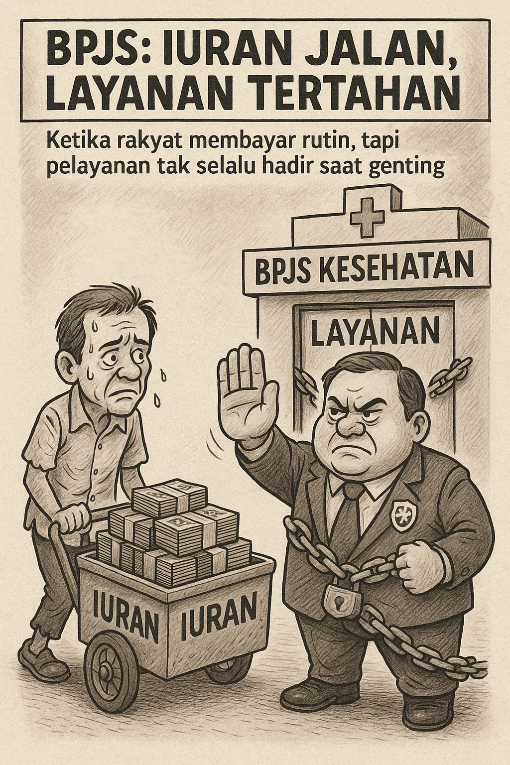 Pertanyaan pun muncul: untuk apa rakyat rutin membayar iuran tiap bulan, bila saat genting justru dipersulit? Kondisi ini jelas melukai rasa keadilan dan menimbulkan ketidakpercayaan terhadap program yang seharusnya menjadi penolong rakyat kecil.