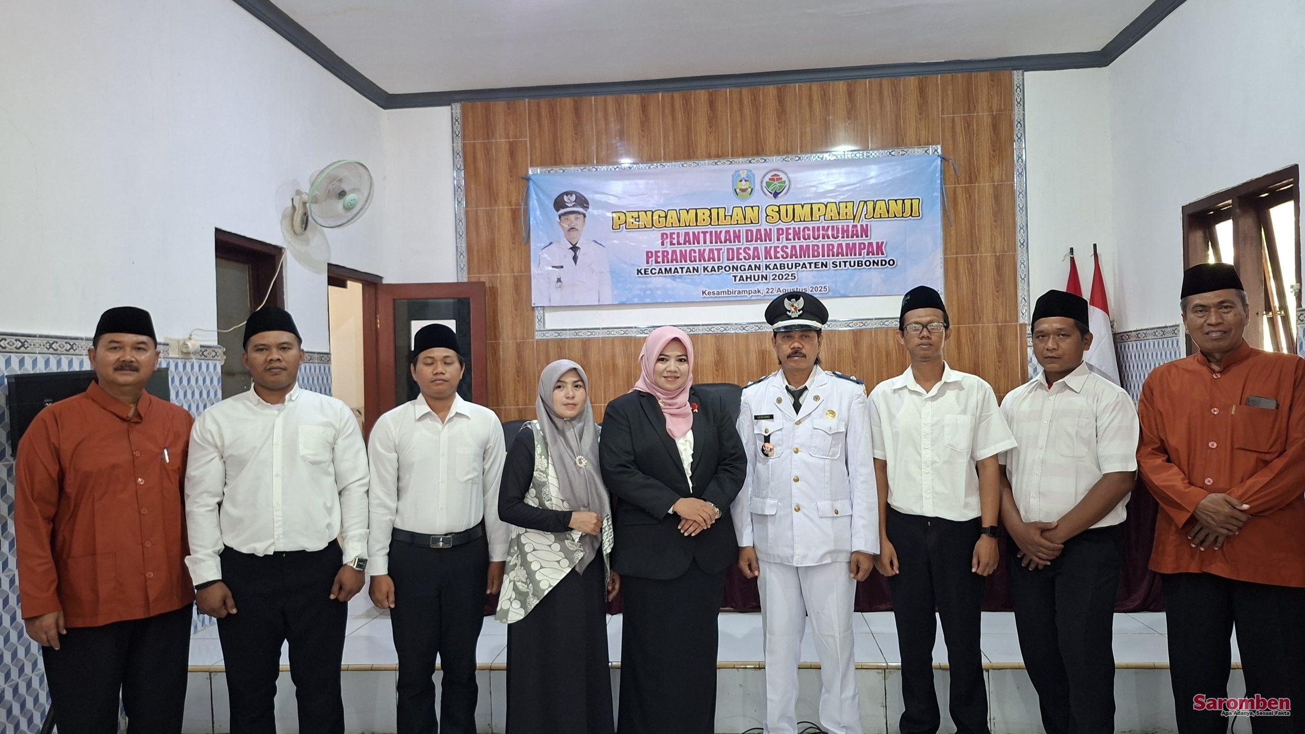 Dalam kesempatan itu, dua perangkat desa resmi dilantik untuk mengemban amanah baru, yakni Kepala Seksi (Kasi) Pelayanan serta Kepala Dusun Karang Malang. Prosesi pelantikan dilakukan langsung oleh Kepala Desa Kesambirampak.