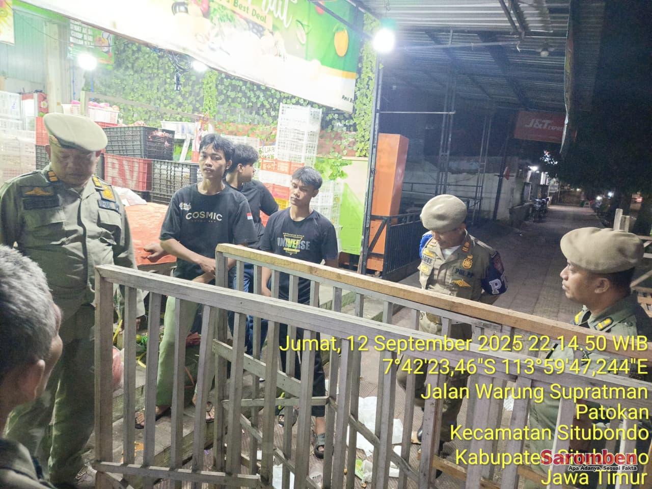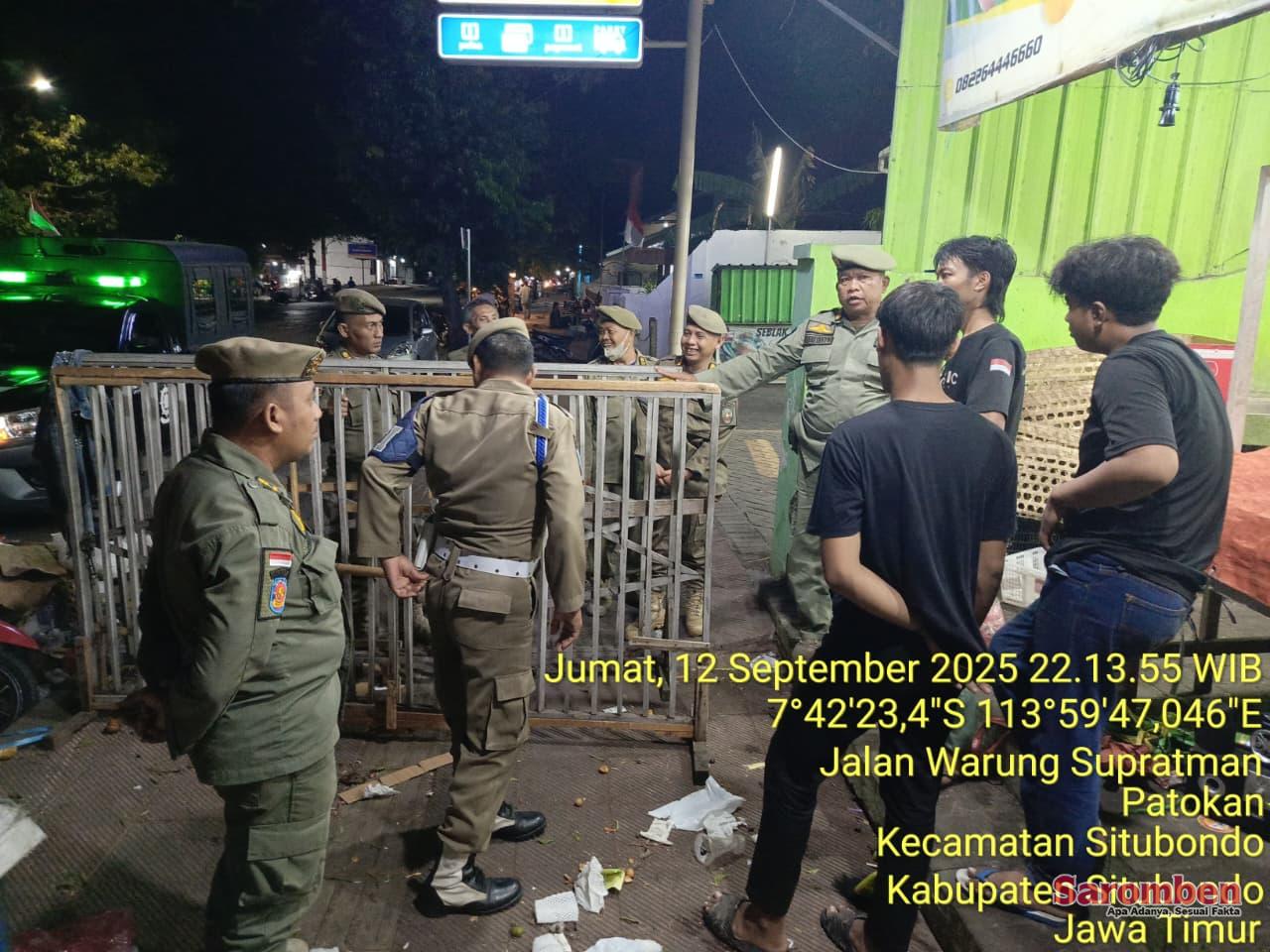 Situbondo, Satuan Polisi Pamong Praja (Satpol PP) Kabupaten Situbondo bergerak cepat menindaklanjuti pengaduan warga terkait keberadaan pedagang yang berjualan siang dan malam di trotoar Jalan WR Supratman.(12/9/2025)