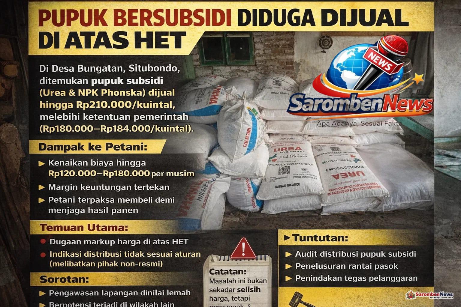 Situbondo – Program pupuk bersubsidi yang dirancang sebagai bantalan ekonomi bagi petani kecil kembali menghadapi ujian serius. Di Desa Bungatan, Kabupaten Situbondo, praktik penjualan pupuk di atas Harga Eceran Tertinggi (HET) tidak hanya memicu keresahan petani, tetapi juga mengarah pada dugaan penyimpangan dalam rantai distribusi resmi.
