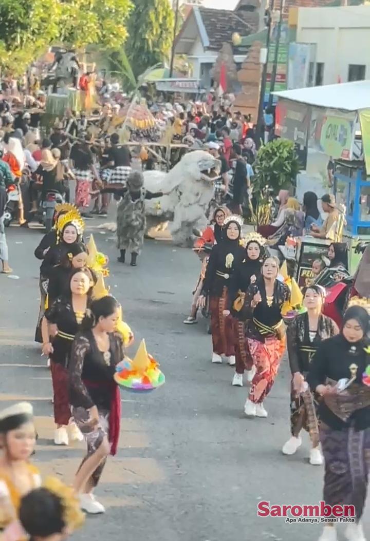 Karnaval tahun ini menghadirkan beragam penampilan dari kelompok masyarakat, sekolah, hingga komunitas desa. Salah satu yang paling menyedot perhatian adalah Team Pocalapo Tanjung Sari Barat, Desa Tanjung Kamal, yang tampil kompak dan penuh semangat sepanjang jalur karnaval.