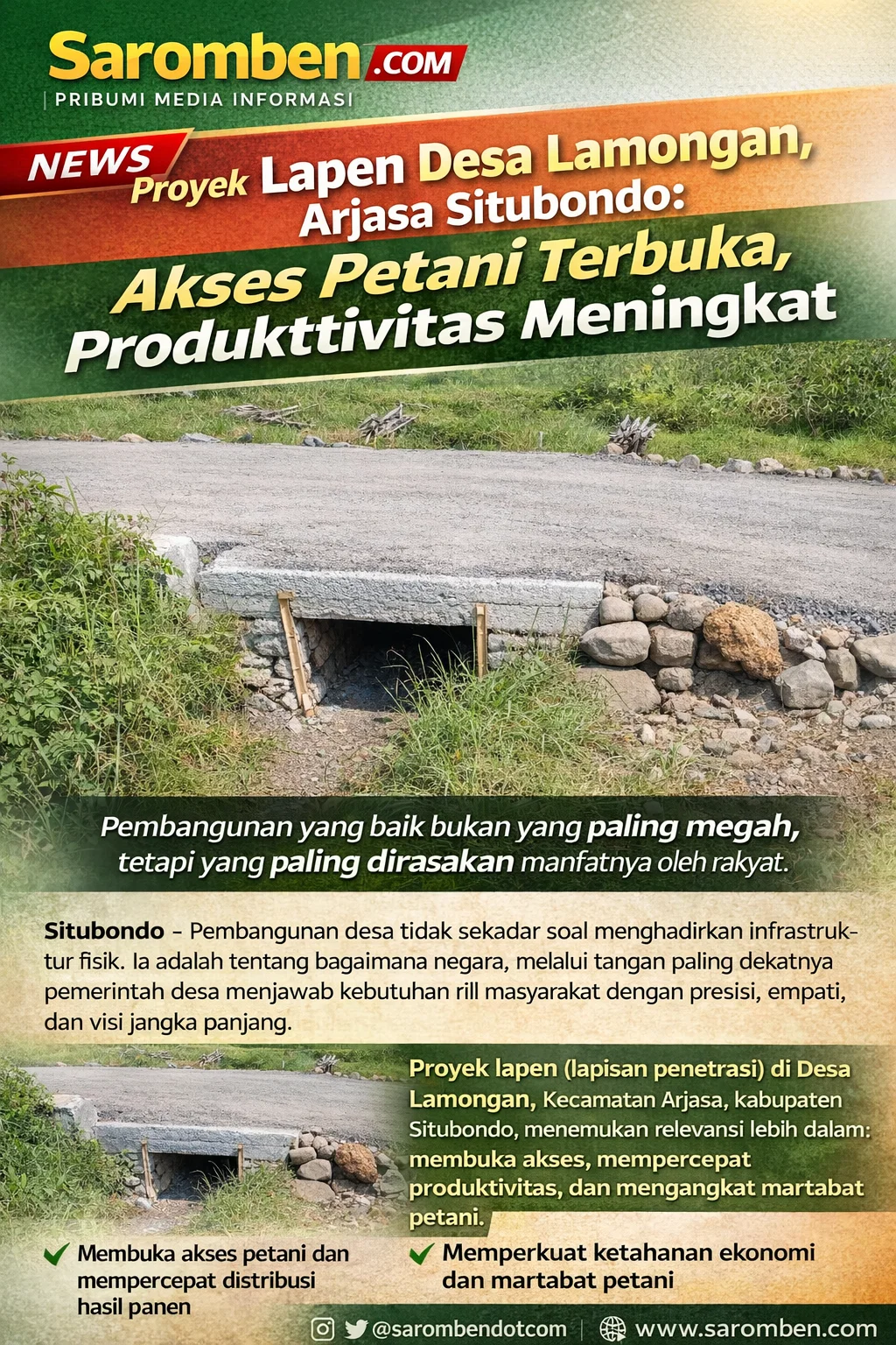 Lapen Desa Lamongan Situbondo Bikin Petani Tersenyum, Akses Jalan Kini Lancar