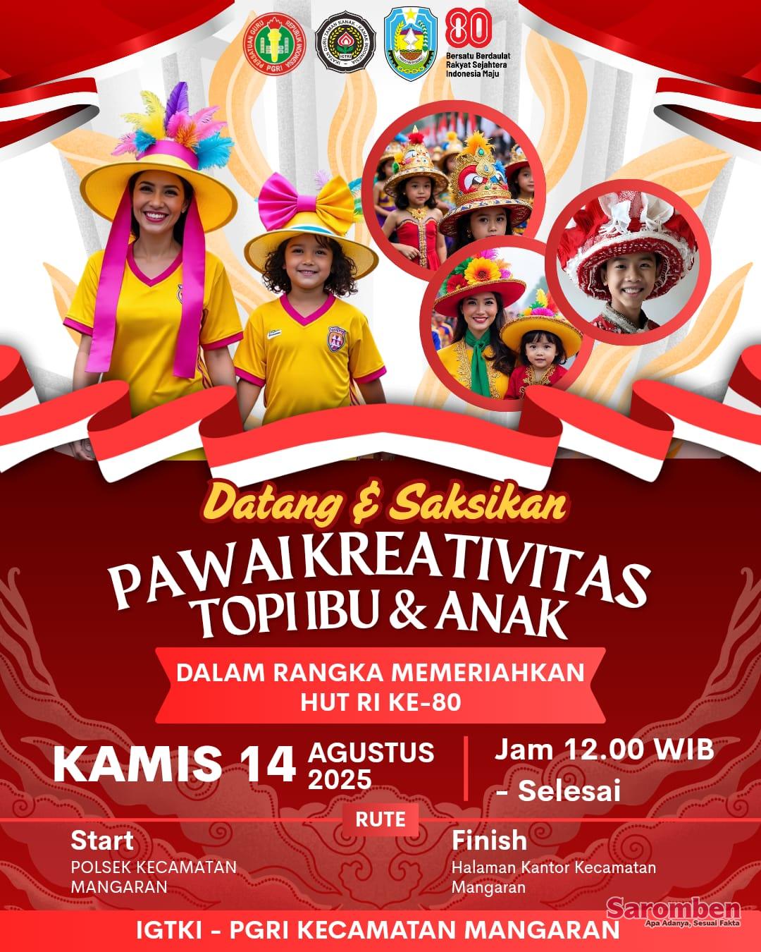 Kegiatan unik dan penuh warna ini akan dimulai pukul 12.00 WIB dengan rute start dari Polsek Kecamatan Mangaran dan finish di Halaman Kantor Kecamatan Mangaran. Peserta, yang terdiri dari para ibu bersama anak-anak, akan memamerkan topi-topi kreatif hasil kreasi masing-masing, mulai dari hiasan bunga, pita, bulu warna-warni, hingga ornamen khas kemerdekaan.