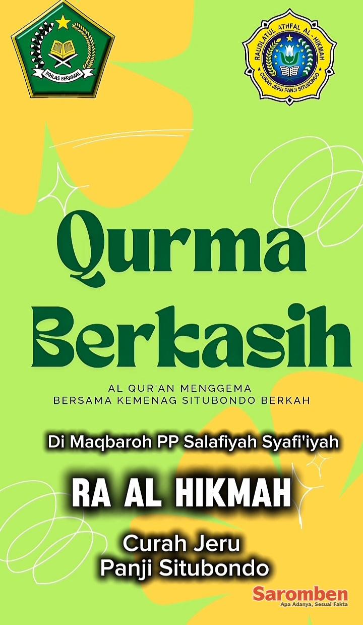 Dalam semangat menyemarakkan nilai-nilai keagamaan dan memperkuat kecintaan terhadap Al-Qur’an sejak dini, RA Al Hikmah Curah Jeru, Kecamatan Panji, Kabupaten Situbondo, menggelar kegiatan bertajuk Qurma Berkasih di Maqbaroh Pondok Pesantren Salafiyah Syafi’iyah.
