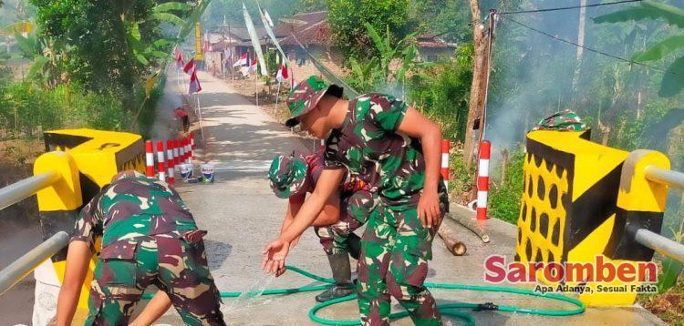 Satgas TMMD dan Warga Gotong-Royong Bersihkan Jembatan Jelang Peresmian