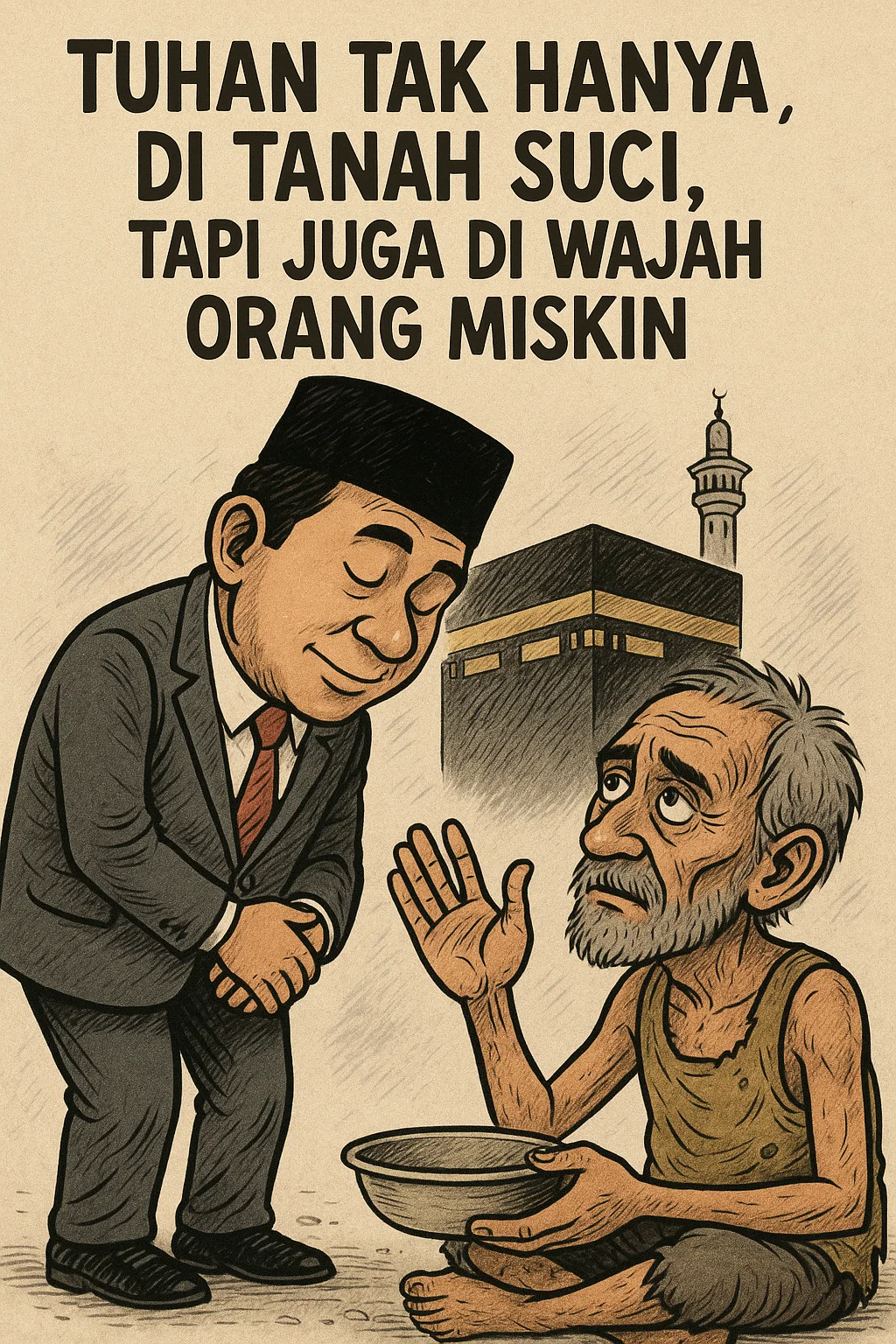 Banyak orang berlomba berangkat haji berkali-kali atau umroh hampir setiap tahun. Mereka menghabiskan ratusan juta rupiah demi perjalanan spiritual berulang. Namun, di sekeliling mereka masih ada tetangga yang lapar, anak-anak yang putus sekolah, dan orang sakit yang tak mampu berobat. Pertanyaannya: di mana letak kepedulian sosial dalam kesalehan yang dibanggakan itu?